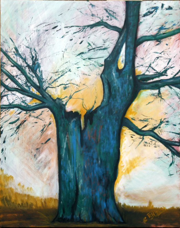 Wir parkten unser Auto und liefen dann den Feldweg zu ihr hinauf. Jetzt im Januar stand sie ohne ihr Blätterkleid nackt und bloß vor uns und dennoch wirkte sie auf mich stark und majestätisch. Da stand ich nun vor ihr und vernahm ihren Gruß „Schön, dass du da bist“.