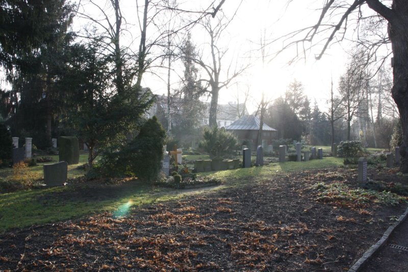 Gleich neben unserem Wohnhaus, unmittelbar an der Grundstücksgrenze beginnt der Äusere Briesnitzer Friedhof. Es ist nicht nur ein Ruheort für die Versorbenen, sondern auch ein Ort des Lebens. Viele alte und auch junge Bäume der verschiedensten Arten sind dort zu finden.